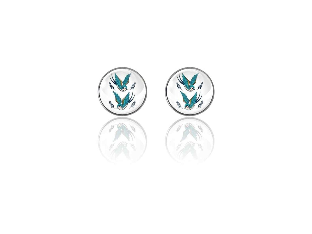 Peckové náušnice Aerolky s motivem dvou letících vlaštovek v elegantním stylu.