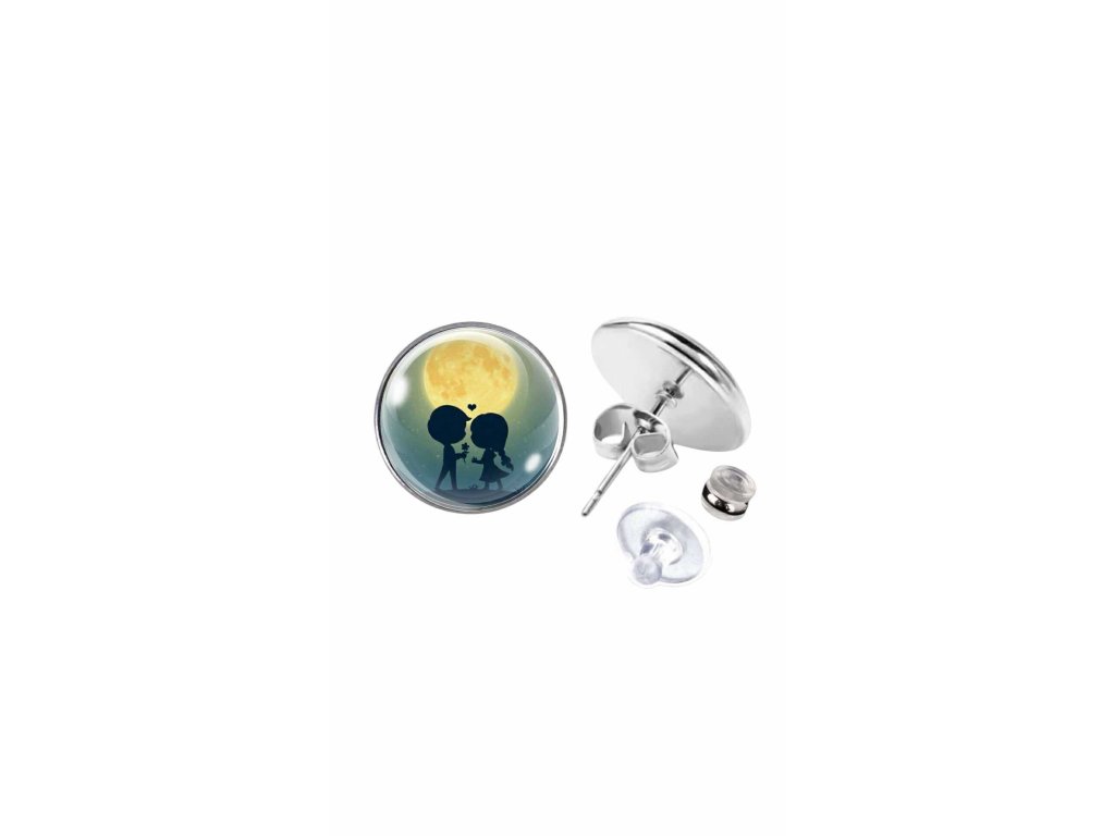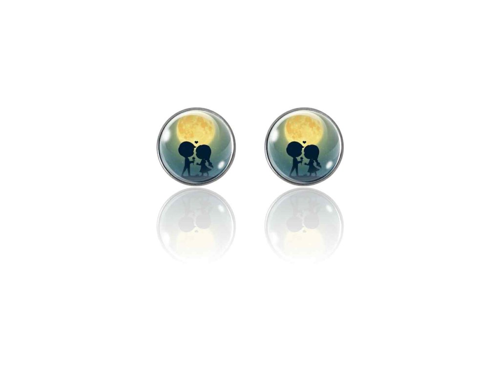Peckové náušnice Amorelky s romantickým motivem zamilovaného páru pod úplňkem.