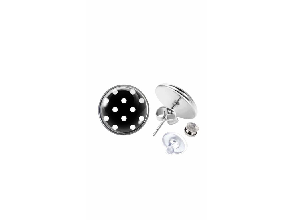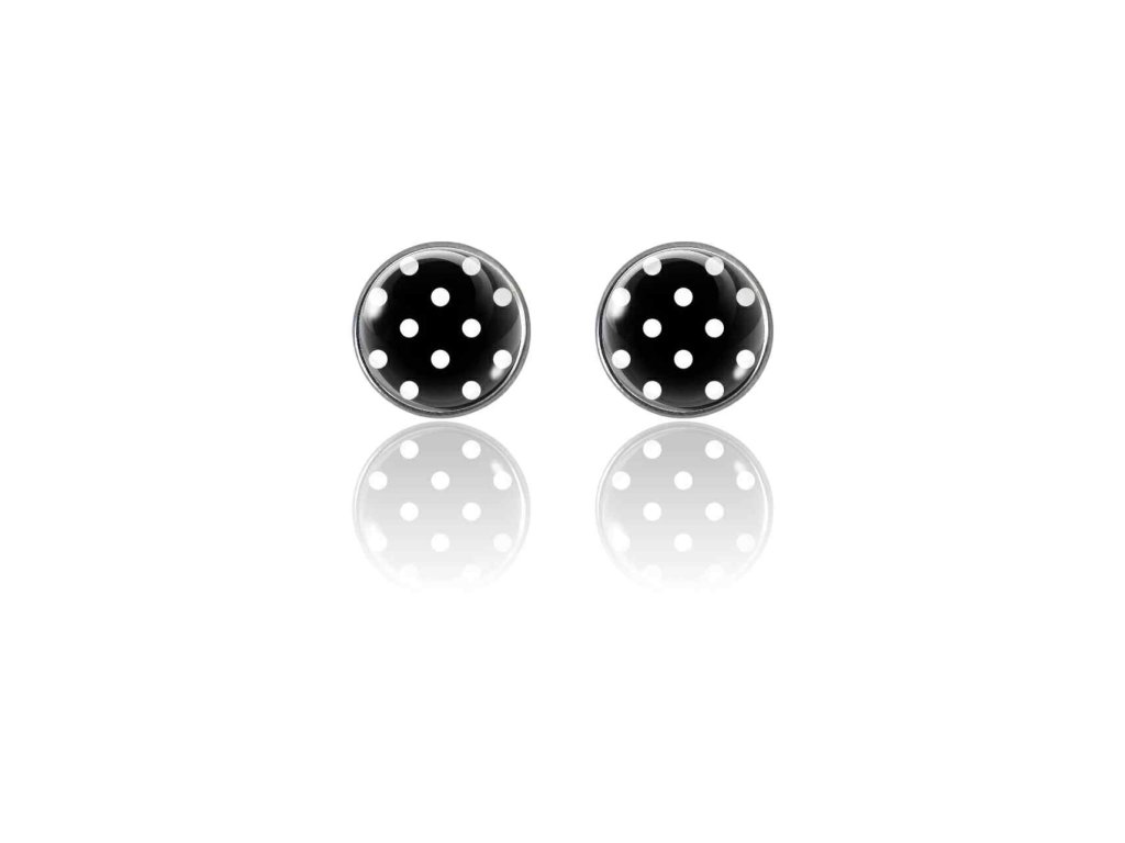 Peckové náušnice Monetky, které si získají pozornost kontrastem bílých teček a jejich hravou elegancí.